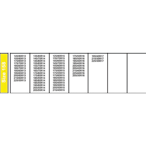 سایز لاستیک خود را در جدول تصاویر پیدا کنید و نسبت به سایز خودرو زنجیر چرخ مناسب ثبت سفارش انجام دهید